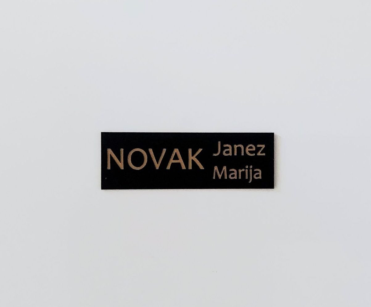 Napisi oz. imenske tablice za poštni nabiralnik so voljo v hišni ali blokovski izvedbi in v črno/beli ali črno/zlati barvni kombinaciji.